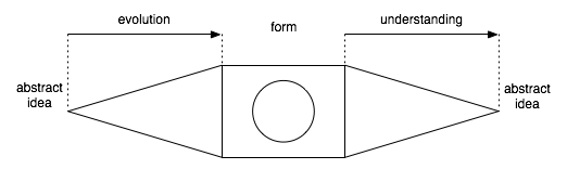 Evolution goes from abstraction to phenomen, from logical to real space. Cognition goes from