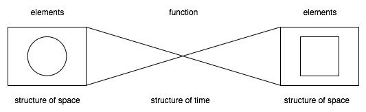 The elements are the structure of space. The functions are the structure of time and modify the structure of space, the elements organization.